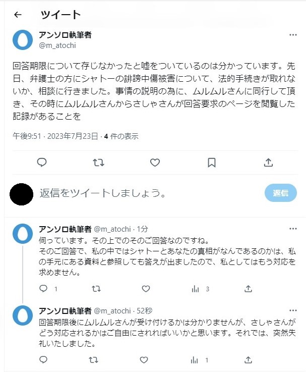 以上が、誹謗中傷アカウント「シャトー」追及を終えての、ムルムルの所感となります。