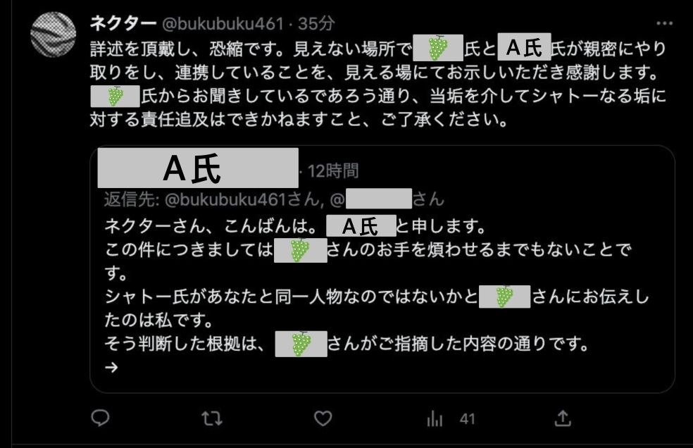 シャインマスカット氏はシャトーとのやり取りを公開しない理由として